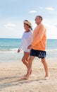 Plage femme heureux et porter et plage chapeau voyage